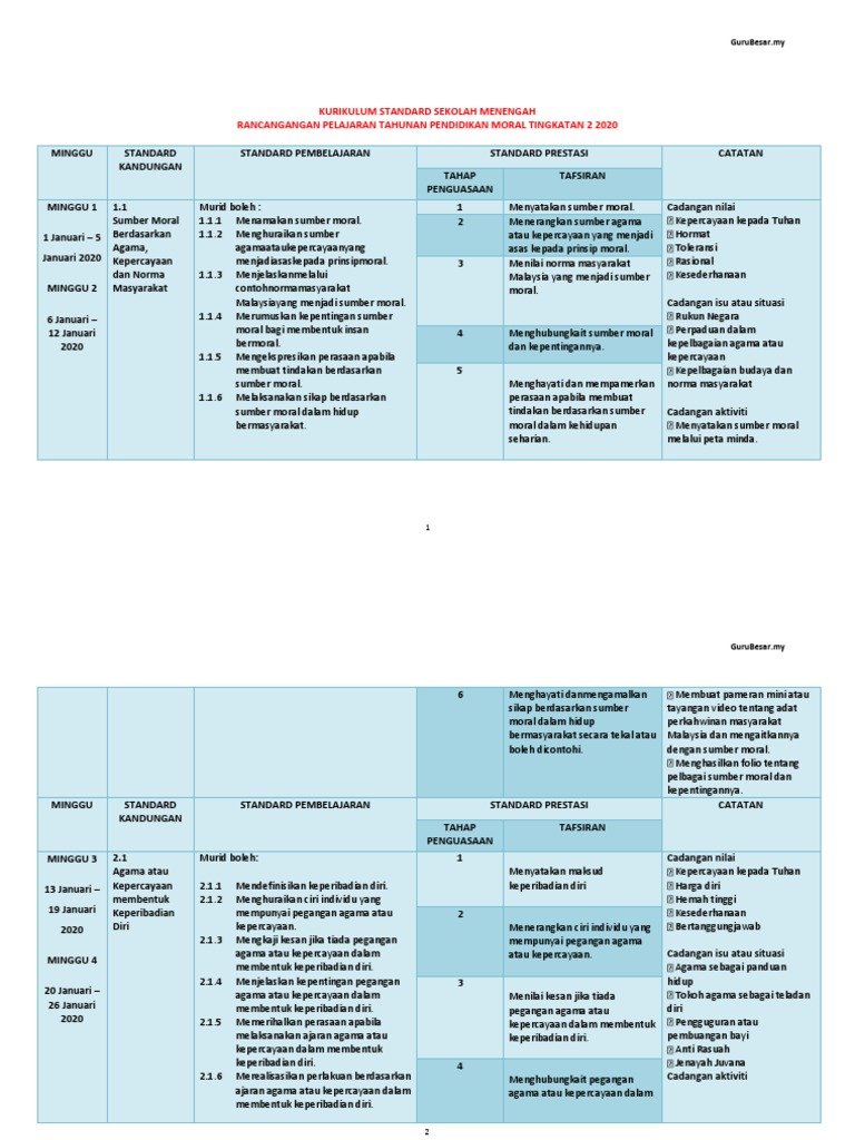 Rpt 2020 Pendidikan Moral Tingkatan 2 Kssm Pdf