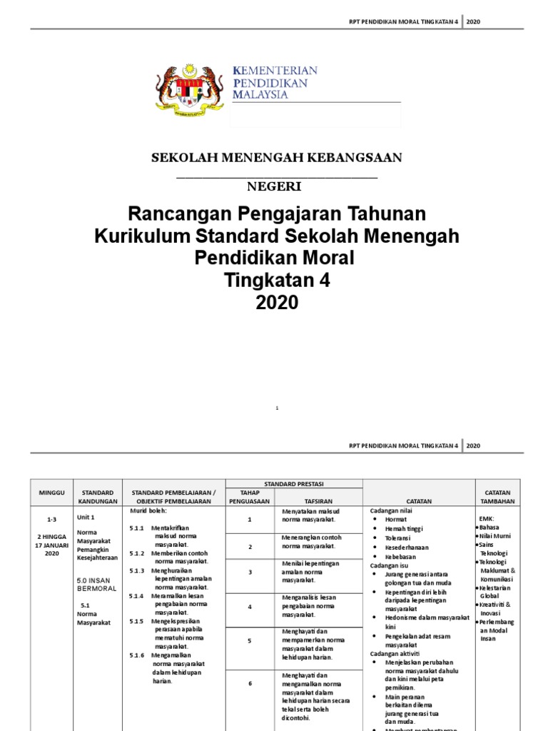 Rpt Pendidikan Moral Tingkatan 4 2020 Pdf